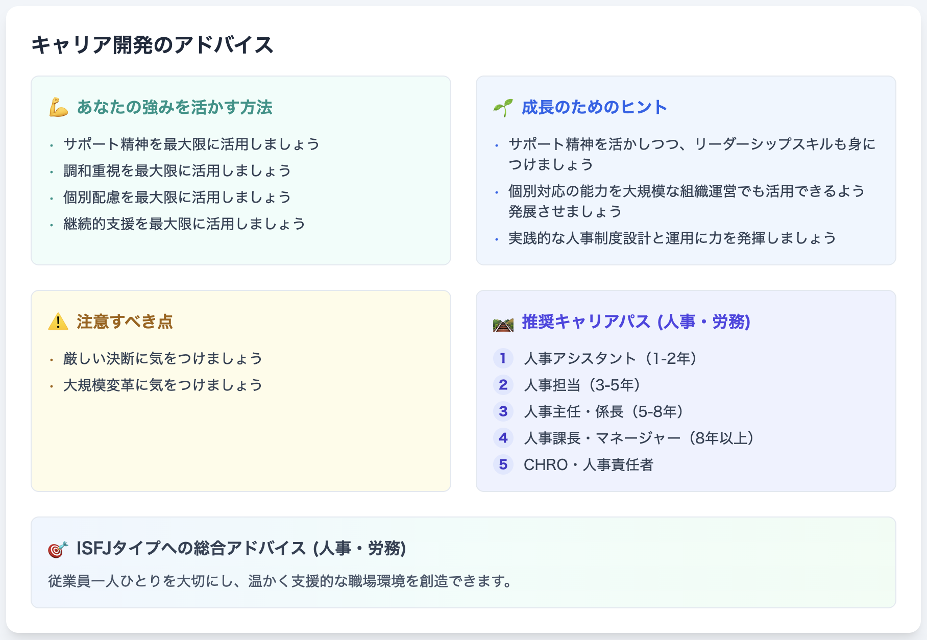 特に印象的だったのは、「キャリア開発のアドバイス」としてサポート精神・調和重視・個別配慮など性格的な特性を、仕事でどう活かせるかまで細かくフィードバックしてくれる点です。